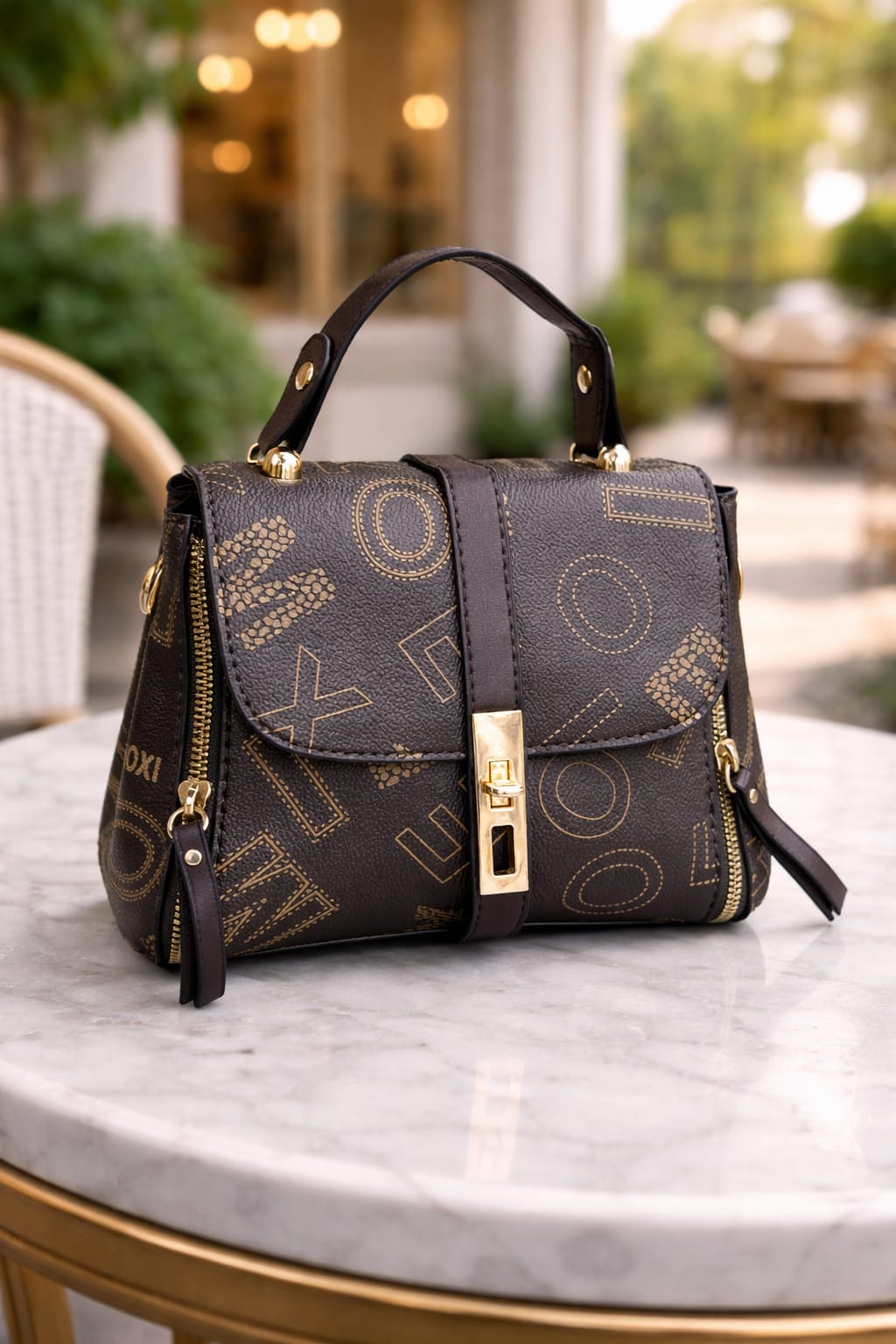 Add a touch of vintage luxury to your outfit with this stunning structured handbag. Compact...