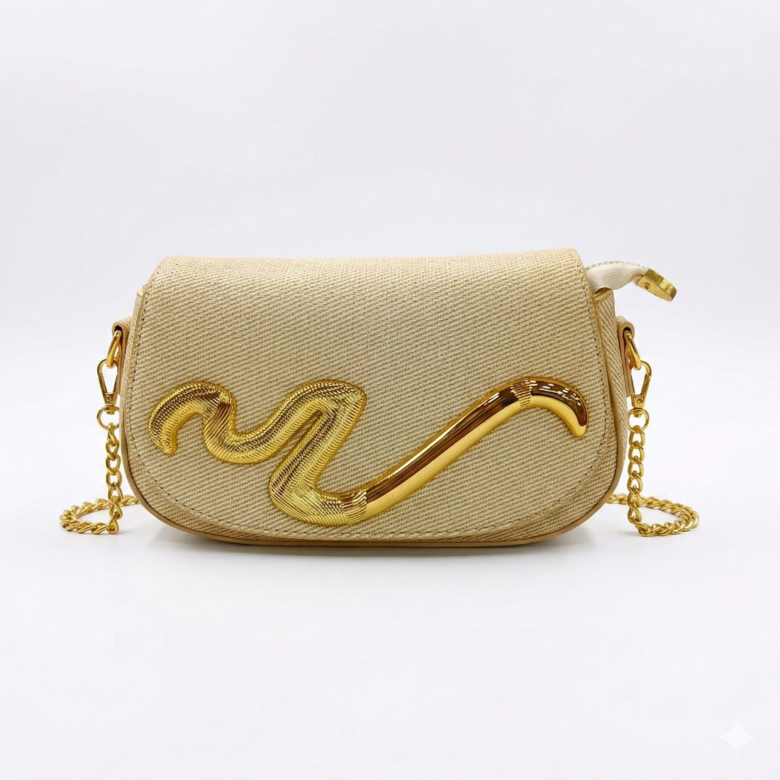 Designer-Inspired GG Canvas Crossbody Bag – Gold Chain
