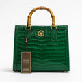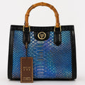 Anfeiya Elegant Croc & Python Textured Bamboo Handle Tote Bag