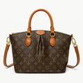 Elevate your everyday style with this timeless monogram tote handbag. Featuring the iconic LV-style pattern, this elegant piece combines sophistication with practicality. Crafted from high-quality leatherette, it boasts structured dual handles and gold-tone hardware for a refined finish.
